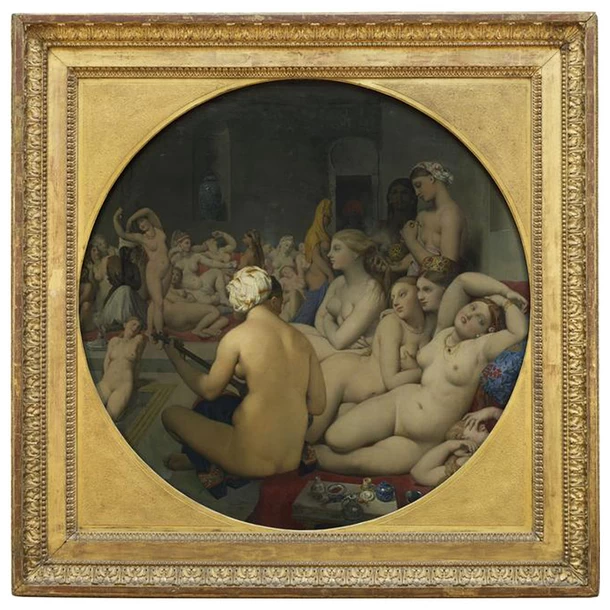 Le Bain turc est une encyclopédie des grands nus imaginés par Ingres au cours de sa carrière, à commencer par le plus ancien, la célèbre Baigneuse (1808), assise et vue de dos. La réunion de tous ses nus fétiches manifeste l’affranchissement complet de l’artiste, qui maintient sans ciller le primat de l’imaginaire littéraire des bains ottomans, hérité du XVIIIe siècle, contre l’illusion du vérisme ethnographique des jeunes peintres orientalistes. Avec l’aplomb et la désinvolture du grand âge (82 ans !), Ingres perfectionne sa technique de composition par collage des corps librement manipulés, pétris et réarticulés. Les carnations épilées, veloutées et uniformes créent un sentiment de touffeur, de grouillement et de monstruosité érotique. L’extraordinaire densité plastique du Bain turc est assez féconde pour inspirer les plus grands artistes du XXe siècle, du Harem de Picasso aux poupées de Bellmer.