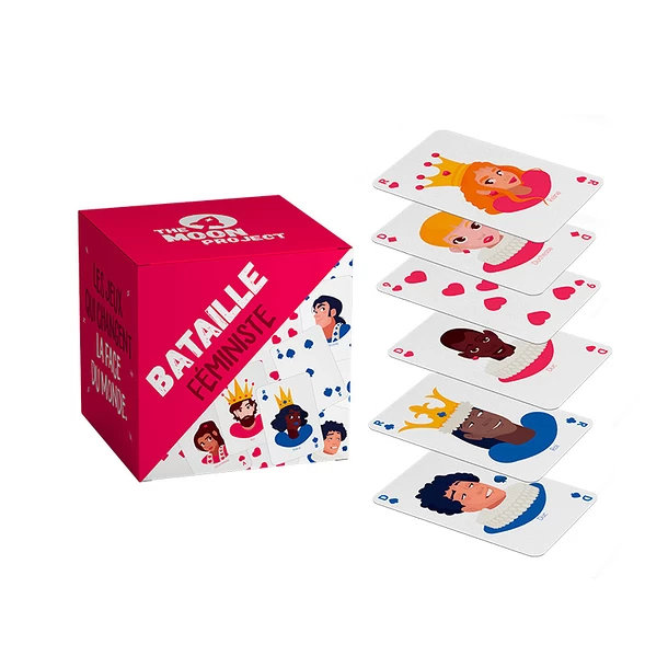 Marre du roi qui bat la dame ? Et si le roi et la reine étaient sur un même pied d’égalité ? Un jeu de bataille innovant où le roi et la reine battent le duc et la duchesse qui battent le vicomte et la vicomtesse. Une bataille féministe pour l’égalité et pour rêver grand.