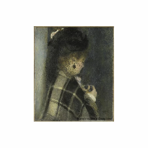 Ces boucles d’oreilles sont inspirées de celles portées par la jeune femme peinte par Auguste Renoir (1841-1919) sur le tableau « Jeune femme à la voilette », vers 1875, conservé au musée d’Orsay.