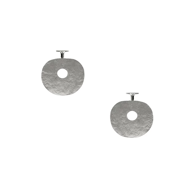 Ce bijou en argent, fabriqué en France, est inspiré d’une pendeloque circulaire (Sardes (Turquie), Royaume Lydien (800-500av. J.-C.); Or) conservée au musée du Louvre.