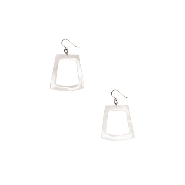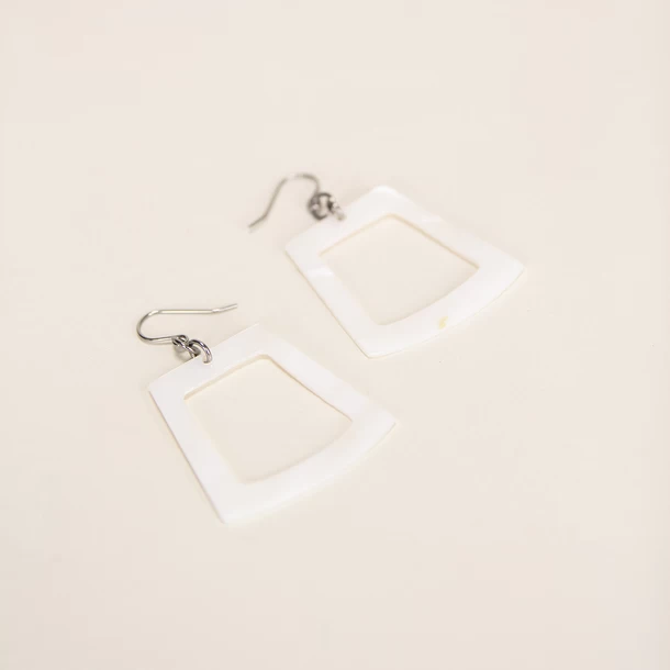 D’élégantes boucles d’oreilles en forme de double-disques percés en nacre blanche.
