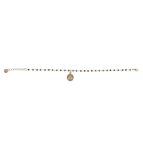 Bracelet en laiton doré à l’or fin et perles de verre facetées avec un médaillon sur lequel figure une abeille, emblème napoléonien, symbole d’immortalité et de résurrection.
