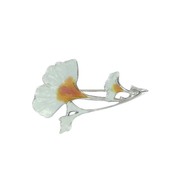 Broche d’inspiration Art nouveau avec un motif émaillé dit champlevé.