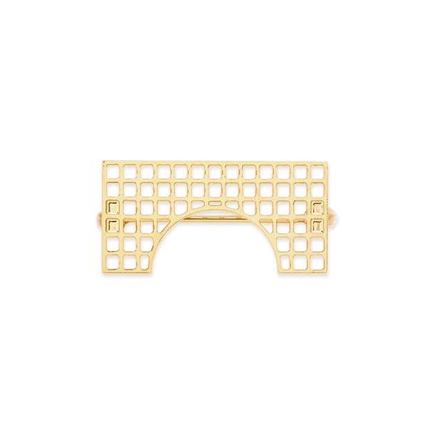 Avec sa grille carrée et ses formes géométriques, la broche Arche est la note moderne de la collection Tuileries.