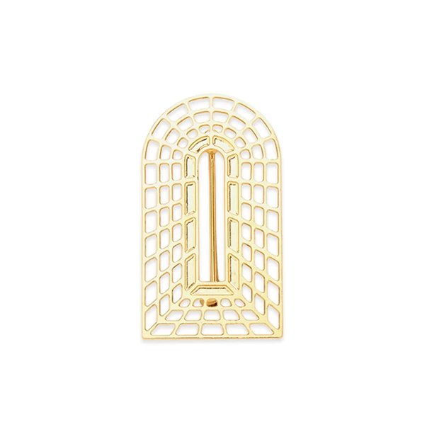 La broche Passage dessine une porte imaginaire, directement inspiré des trompe-l’œil en treillage.
