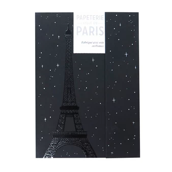 Ce cahier aimanté avec une finition argentée est illustré avec le plus célèbre des monuments parisiens, la Tour Eiffel se dessinant sur un ciel étoilé.