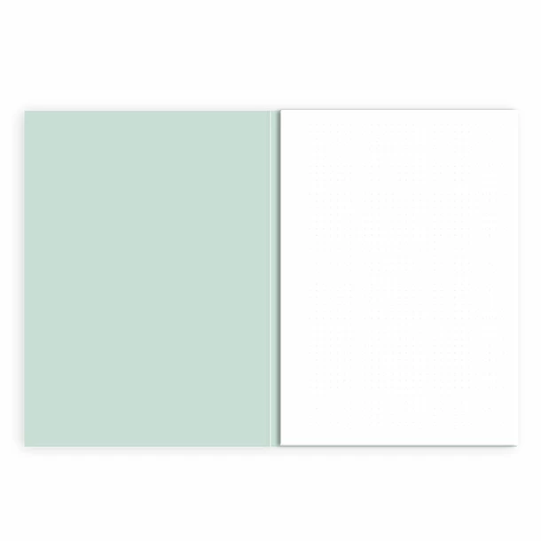 Cahier de 180 pages avec grilles à points et feuillets détachables.
