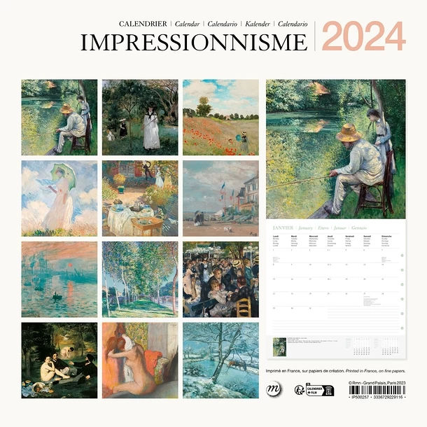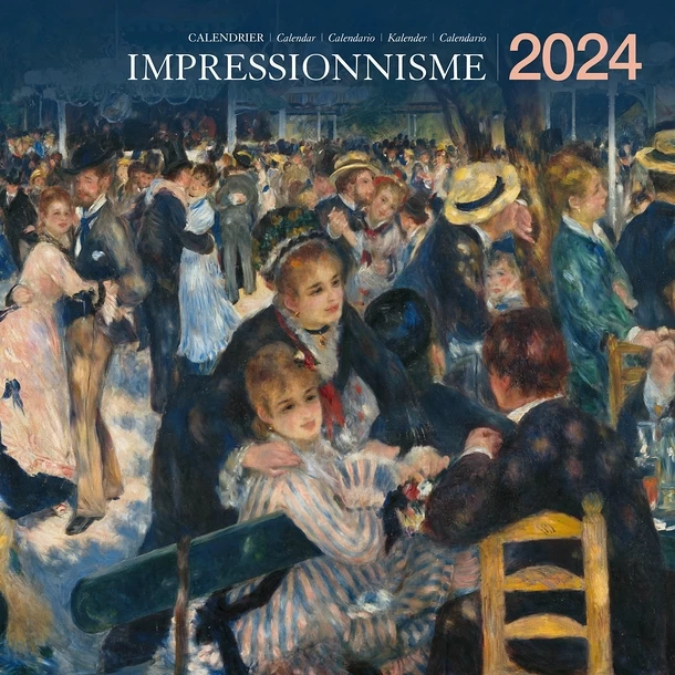 Calendrier 2024 présentant 12 œuvres emblématiques du courant artistique impressionniste.