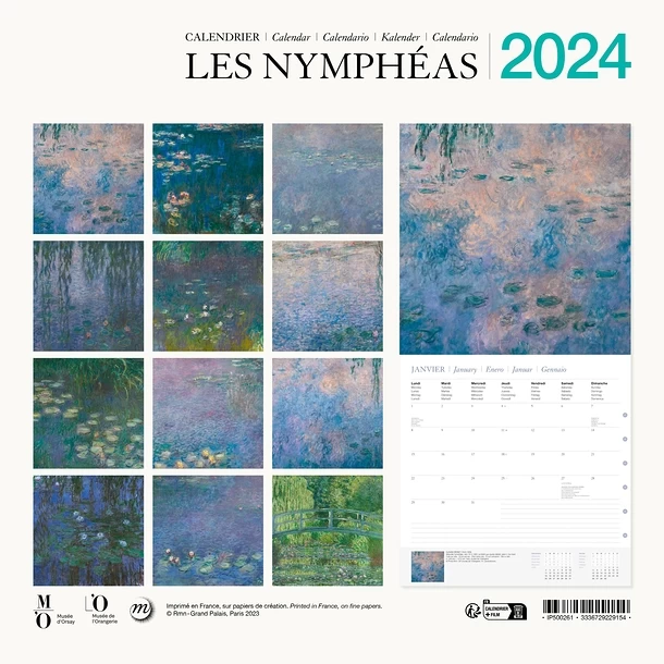 Calendrier 2024 présentant 12 vues de la célèbre série des Nymphéas de l’artiste Claude Monet (1840-1926).