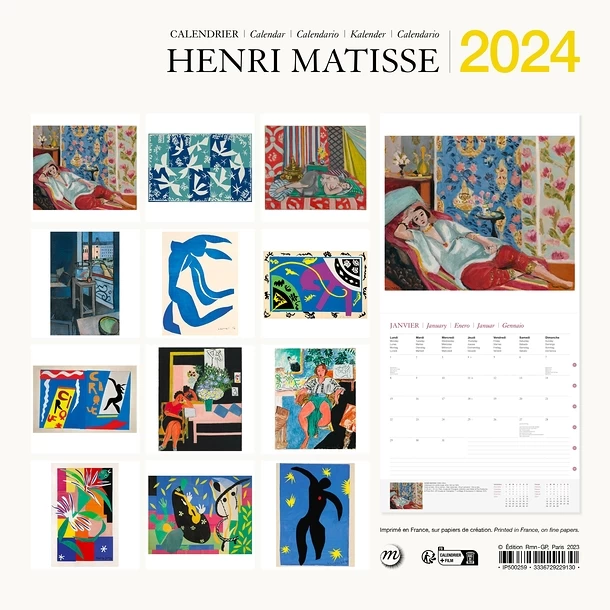 Calendrier 2024 présentant 12 œuvres de l’artiste Henri Matisse (1869-1954).