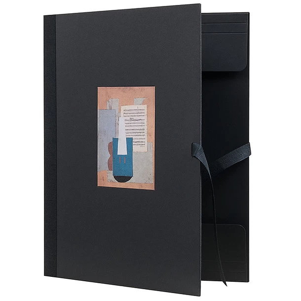 Carton à dessins, 26 x 33 cm, fermeture par rubans, dos toilé.