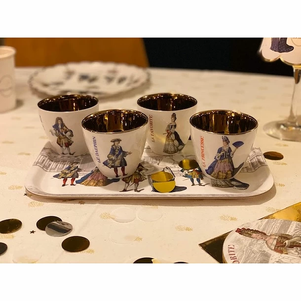 Pour inviter Versailles à votre table, le duo Happy Remix Productions a imaginé pour le Château de Versailles et la Rmn-Grand Palais, une ligne dédiée à Louis XIV et la famille royale, intitulée « A La Cour de Versailles ».