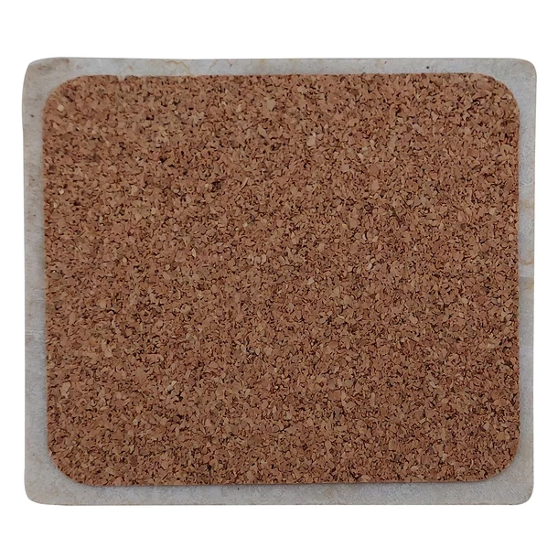 Carreau en marbre naturel imprimé avec une technique exclusive; surface protégée anti-tache; plaque de liège contrecollée sur le dessous