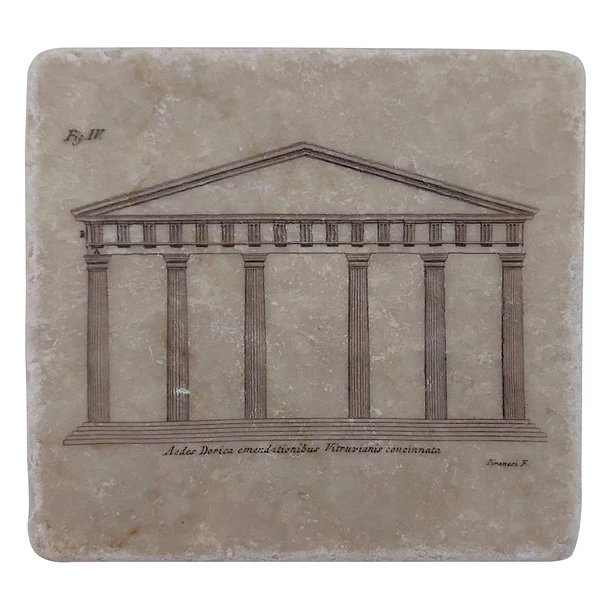 Dessous de verre en marbre reprenant le motif d’une fresque grecque en mosaïque.