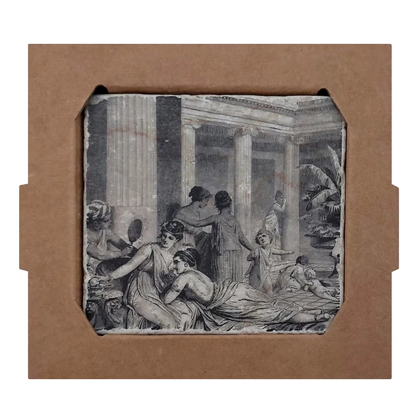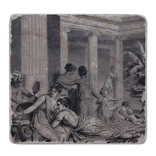 Dessous de verre en marbre reprenant le motif d’une fresque grecque en mosaïque.