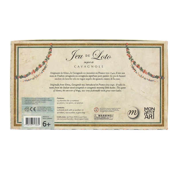 Originaire de Gênes, le Cavagnole est introduit en France vers 1740, il tire son nom de l’italien cavagnolo ou cavagnola signifiant petit panier. Ce jeu de hasard ancêtre du loto fut très en vogue auprès des grandes dames de la cour.