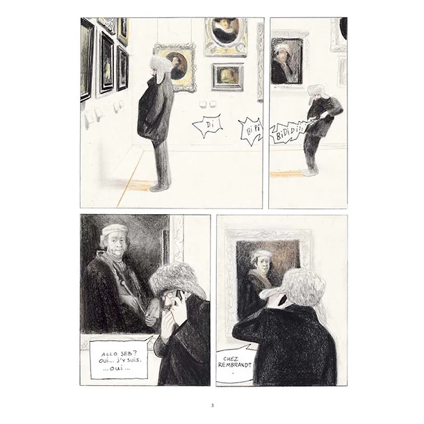 Prudhomme déambule dans les salles du Louvre. Il a l’impression d’être dans les cases d’une bande dessinée géante. Lui-même est en train d’inventer la sienne sur le Louvre. Ce sera une histoire muette ! Car il y a surtout à voir, et même si presque toutes les langues du monde y sont en visite, elles s’y croisent en silence.