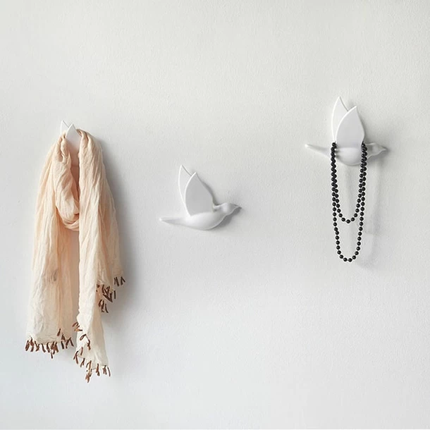 Jeu de 3 patères en plastique au design amusant, en forme d’oiseau.