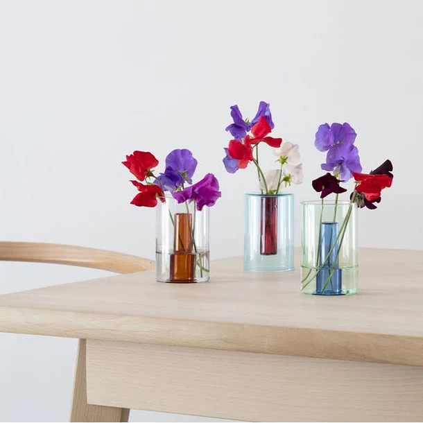 Deux vases en verre coloré en un, ils sont conçus pour laisser votre créativité s’épanouir et vous faire retomber amoureux des fleurs.