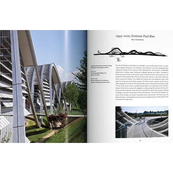 Ce précis de référence parcourt ainsi le monde depuis Osaka, au Japon, jusqu’à Berne, en Suisse, en passant par de nombreuses villes, édifices et îles, à la découverte de la stupéfiante étendue du répertoire de Renzo Piano. De la fameuse ossature extérieure du Centre Pompidou aux structures aérées en forme de coques du Centre culturel Tjibaou de Nouméa, en Nouvelle-Calédonie, le livre offre un voyage passionnant à travers la beauté de l’architecture, univers où, selon Piano, «à chaque fois, la vie semble repartir à zéro».