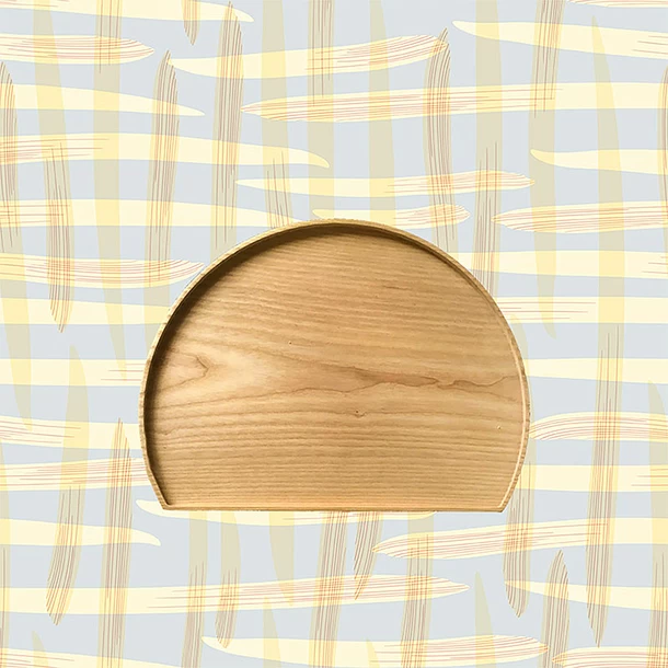 Plateau en frêne non traité chimiquement. Ils se patinera naturellement avec le temps. Il a reçu une légère couche de cire d’abeille et vous pourrez renouveler périodiquement cette protection à l’aide de cire d’abeille naturelle ou encore de cire de carnauba. Un vernis n’est pas recommandé.