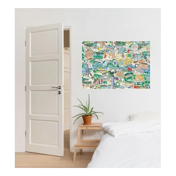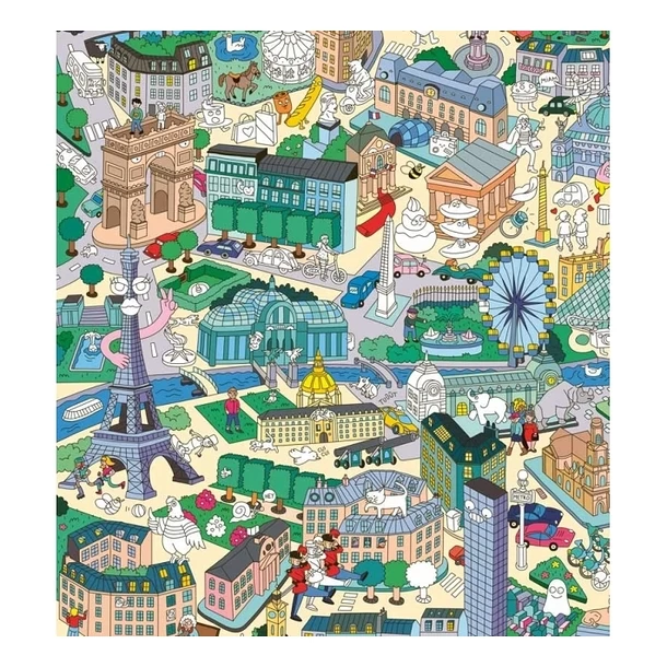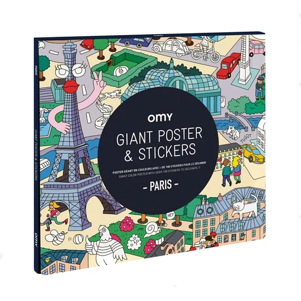 Amusez-vous à retrouver et à coller 150 stickers sur cette carte géante de Paris : Notre-Dame, l’Arc de Triomphe, Saint Germain des Prés, la tour Eiffel, le Sacré-Coeur…