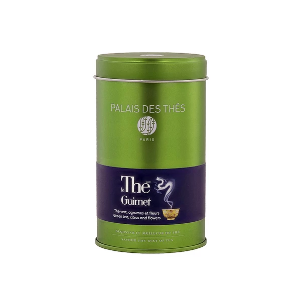 Le Thé Guimet est un mélange raffiné de thé vert aux parfums frais et fleuris évoquant la fleur de cerisier et les agrumes. Des pétales de bleuet parsèment cette délicate recette.