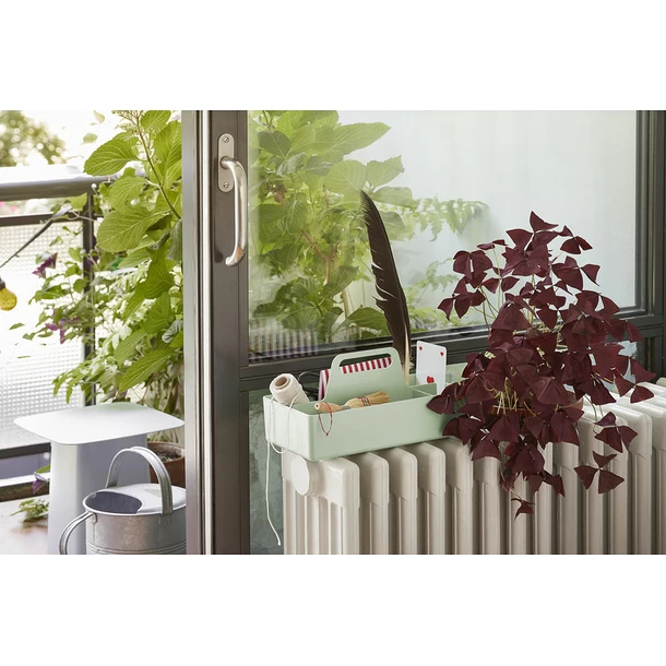 La Toolbox est conçue comme un ustensile d’organisation pratique pour le rangement d’accessoires et de petits objets. Grâce à sa taille pratique, elle peut être facilement rangée dans une armoire ou sur une étagère, et occupe peu de place sur une table. La Toolbox est disponible dans une palette de coloris.