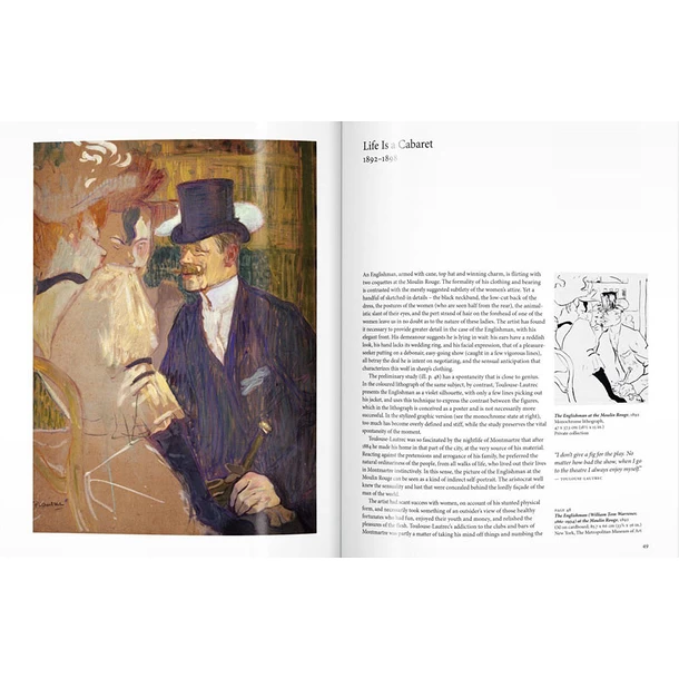 Malgré sa mort précoce à 36 ans, en raison de complications dues à l’alcoolisme et à la syphilis, l’influence culturelle de Toulouse-Lautrec fut immense. Cet ouvrage introductif nous emmène dans un univers de chanteuses, danseuses, musiciens et prostituées, et révèle ainsi un artiste profondément humain, doué d’un talent de figuration étonnant et d’un sens évident pour saisir l’énergie et les légendes de la ville.