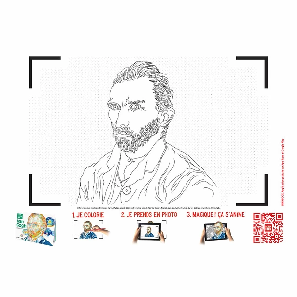 Amuse-toi à colorier 8 peintures de Van Gogh puis, grâce à l’application gratuite BlinkBook, transforme tes coloriages en dessin animé pour voyager sur les pas de l’artiste, depuis sa chambre à Arles jusque devant les