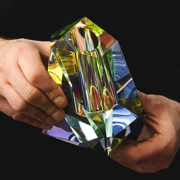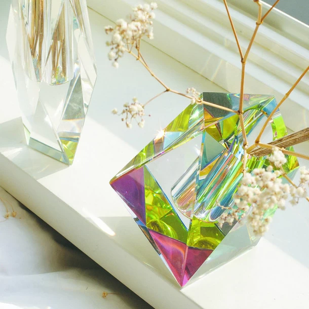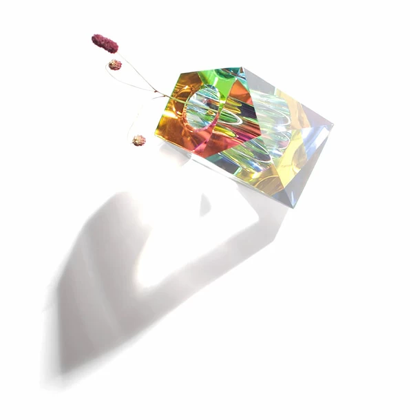 Ce vase grand et anguleux est présenté en angle, ce qui le rend idéal pour les compositions florales de style japonais et attire particulièrement l’attention.